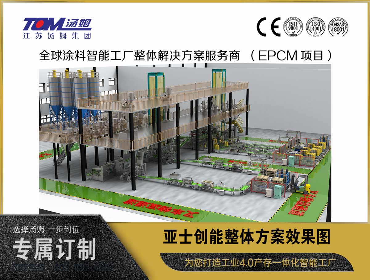 本項目由2條防水涂料灌裝線、2條1-5kg家裝防水液料、粉料雙組份配套全自動生產(chǎn)線和2條25KG大袋包裝線組成。